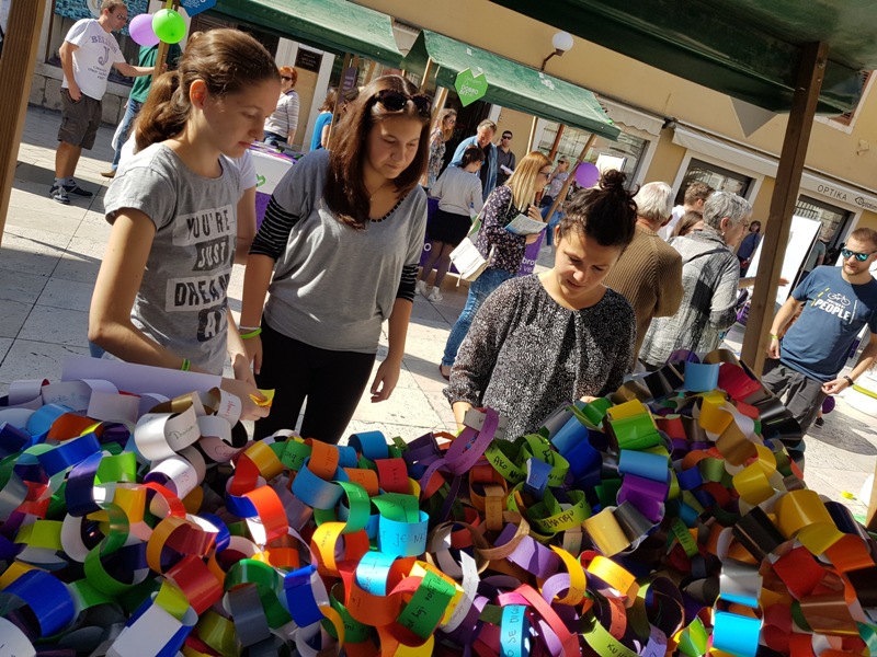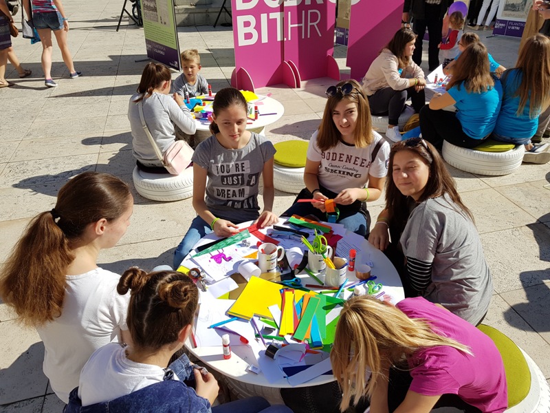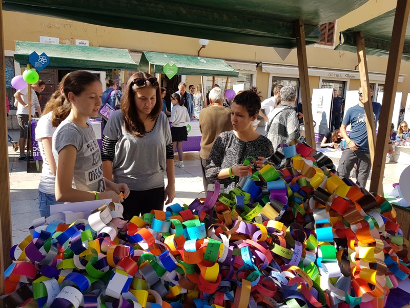 Na poziv organizatora, Nacionalne zaklade za razvoj civilnoga društva, odazvali smo se i mi iz našeg volonterskog kluba „Kapljica“. Pratile su nas Elvira Katić, prof. i s. Viktorija Gadža, prof. Na Narodnom smo trgu, zajedno s više desetaka učenika osnovnih škola iz grada i Županije sudjelovali u izradi poruka na temu čovjekoljublja. Veseli nas što smo nazočnošću, ali i porukama, mogli promovirati kulturu darivanja i pomaganja onima kojima je to najpotrebnije. Jer – kako kap po kap čini slap… tako i male stvari učinjene srcem, kapi dobrote čine veliki slap, a u konačnici – bolji svijet u kojemu „i moja kaplja – pomaže ga tkati“.