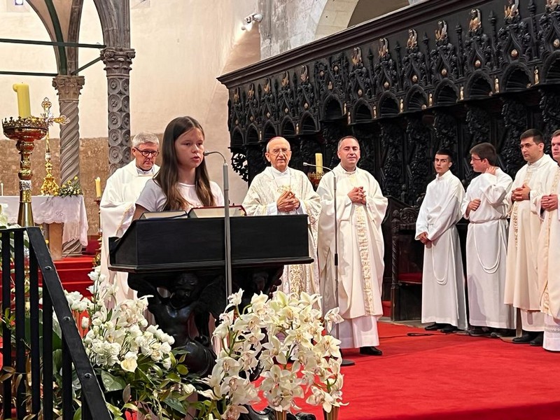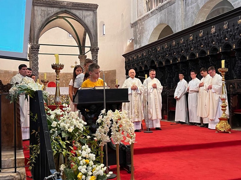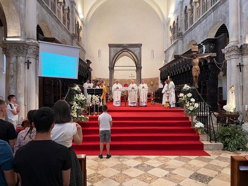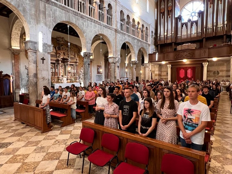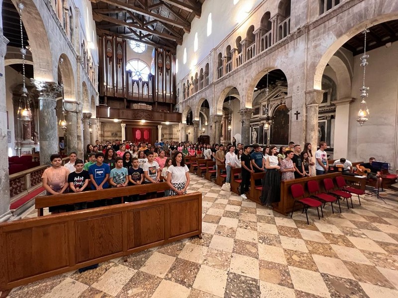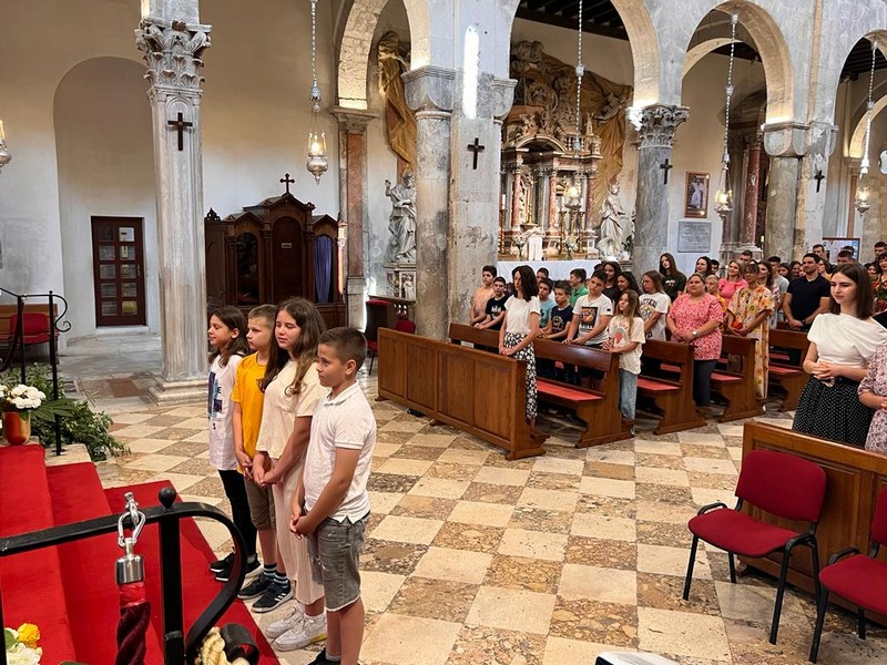 Posljednjeg dana nastave, 21. lipnja 2022. godine, okupili smo se u našim učionicama i zajedno krenuli u katedralnu crkvi sv. Stošije na misno slavlje zajedno s učenicima Katoličke osnovne škole Ivo Mašina i Osnovne glazbene škole sv. Benedikta.