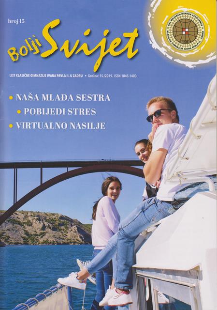 U ponedjeljak 20. svibnja, prvoga od Dana otvorenih vrata, u školskoj dvorani s početkom u 13:15 sati bit će predstavljen novi broj školskoga lista Bolji svijet. U svojem 15. broju Bolji svijet donosi 34 kratke misli učenika o njihovoj školi: čime se ponose, koje su joj prednosti i kakva je školska atmosfera. List predstavlja svoju mlađu sestru Katoličku osnovnu školu „Ivo Mašina“, koja je zaokružila odgojno-obrazovni sustav Katoličke Crkve u Zadarskoj nadbiskupiji te su tu i nezaobilazna školska zbivanja, intervjui s nastavnicima, s maturantima sportašima i maturantima sjemeništarcima. Novi broj daje savjete za učinkovito učenje i prevladavanje školskog stresa, govori o vršnjačkom nasilju, kao i o egzotičnoj i nepoznatoj korejskoj glazbi. Učenička nadarenost vidi se i na njihovim fotografijama, likovnim i literarnim radovima, a Kutak za maturante baš se opustio među najstarijim učenicima i na ekskurziji u Grčkoj. English pages standardno već zatvaraju list stripom.